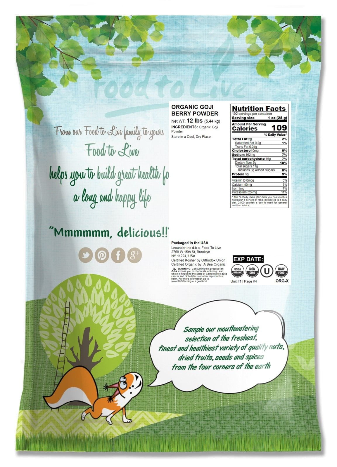 Organic Goji Berry Powder 12 Pounds Non Gmo Kosher Raw Vegan By Food To Live Walmart Com
