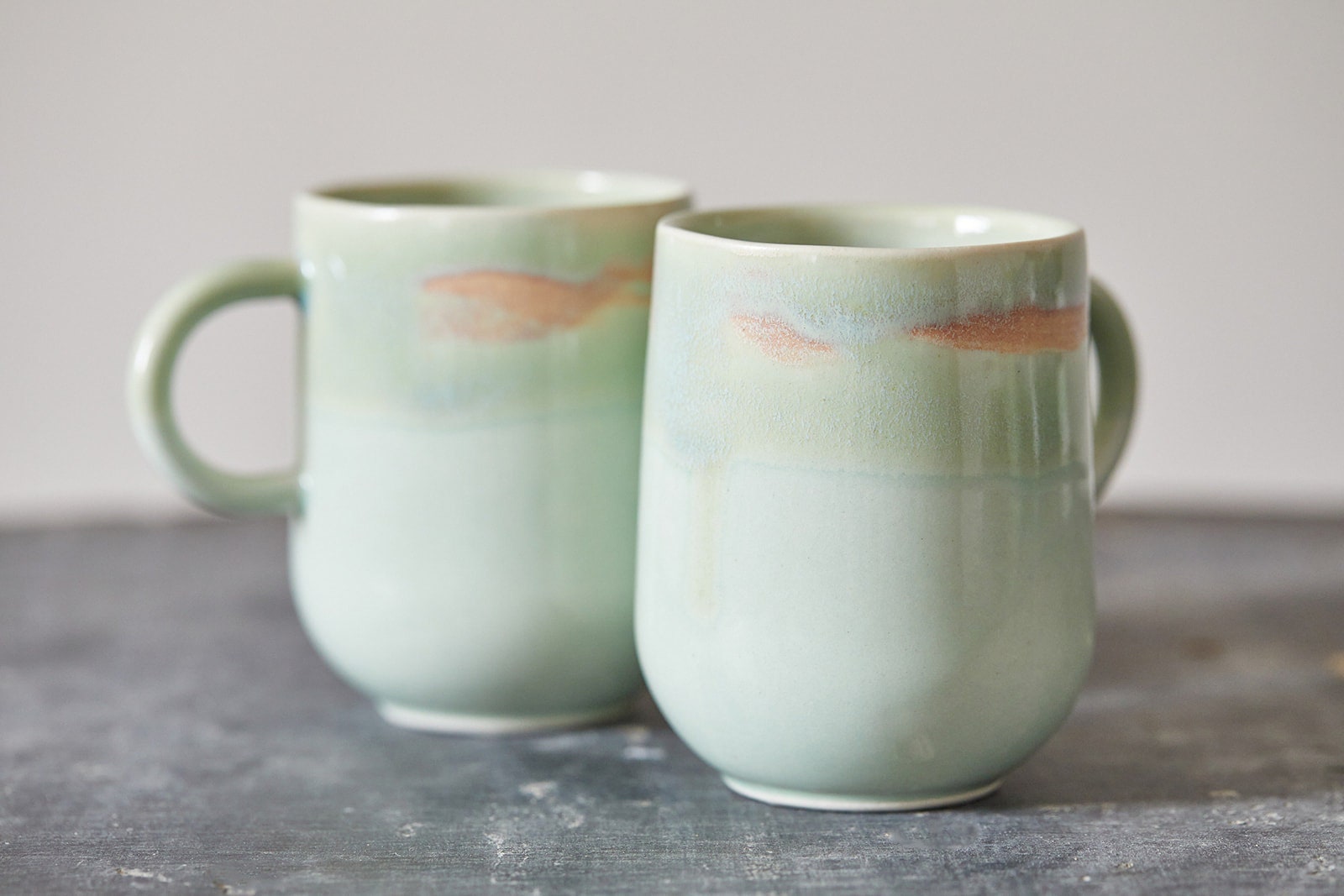 Set Of 2 Ceramic Mug Turquoise Coffee Mug Unique Glaze Etsy Uk